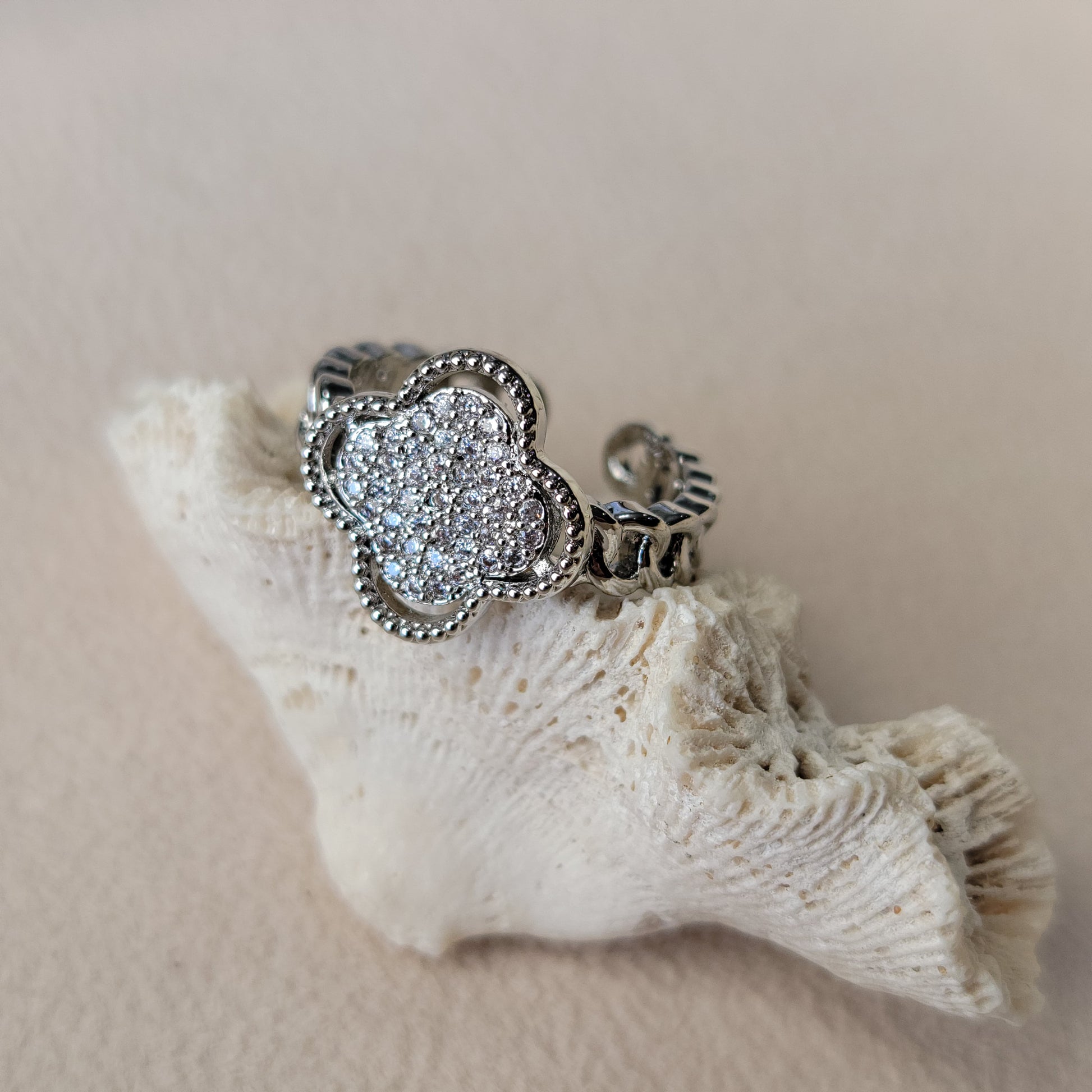 Silver clover with stones